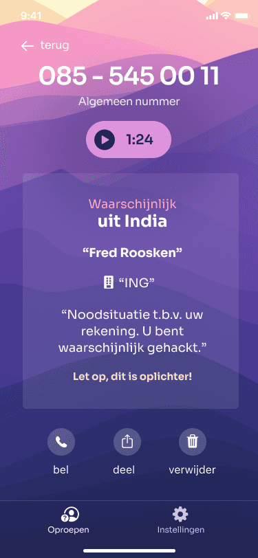 Hoe we dat doen? Met onze slimme assistent die onbekende bellers zelf afhandelt. Zo wordt je niet langer gestoord of loop je geen kans op oplichting.